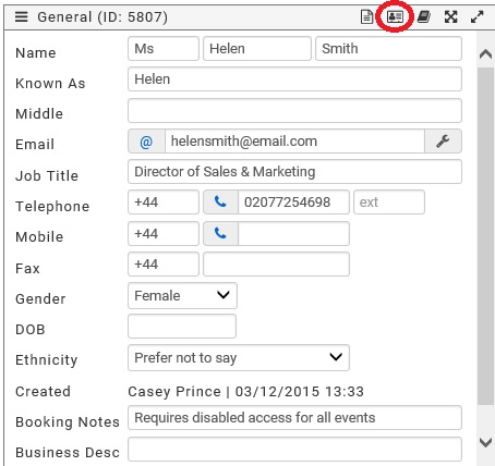 If a record is set as ‘Individual’, the contact listed within this record will be linked to the main contact record. Any changes made to the contact record are reflected within the ‘General’ section of the open record such as name and telephone.