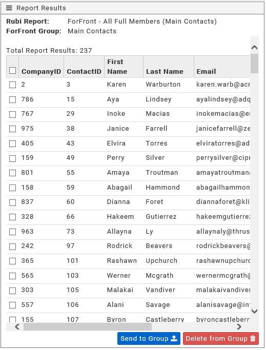 Once selected, Rubi will run the report (with the predetermined search values) and return the most up to date results within the browser.