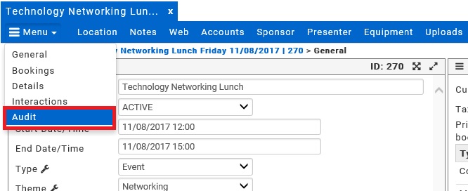 Business information for company records can be found in the menu bar within an open record (shown below).