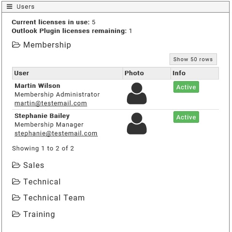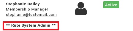 Each Rubi user is listed in alphabetical order and filed in the relevant departmental folder (if a folder has been set for the user). System Admininstrators can be identified by the System Admin label as shown below.
