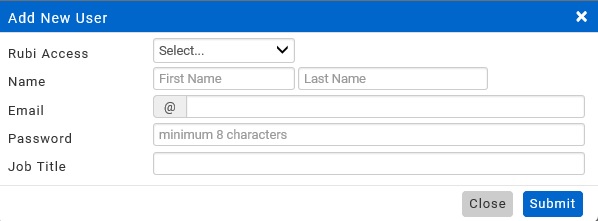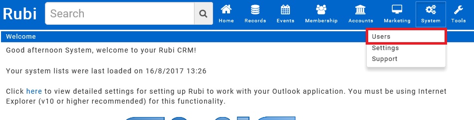 System Administrators have access to amend individual accounts from this section. All other users will only have viewing rights within the Rubi User List area. For more information on managing system users, please click here.