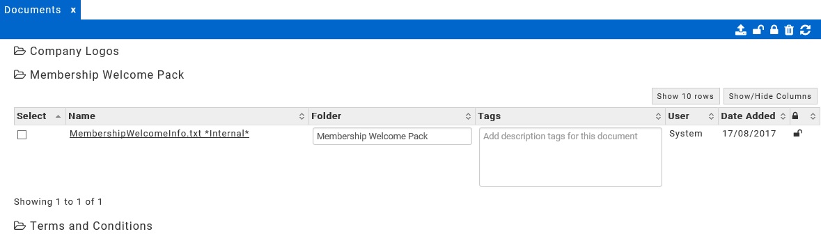 Once selected, Rubi will navigate users to the Documents folder and display all previously uploaded files. Files that have been allocated a folder name will appear in the relevant folder in alphabetical order. Files that have not been allocated a folder can be found in ‘No folder set’.